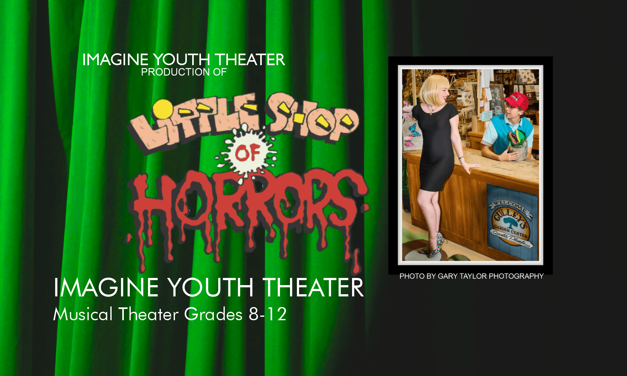 Imagine Youth Theater wishes to extend our heartfelt thanks to Gulleyโs Garden Center for generously allowing us to use their beautiful space for our Little Shop of Horrors photo shoot. Surrounded by blooms, greenery, and a touch of magic, it was truly the perfect setting to bring Skid Row to life. Your kindness and support helped our vision take root โ and blossom into something extraordinary.
