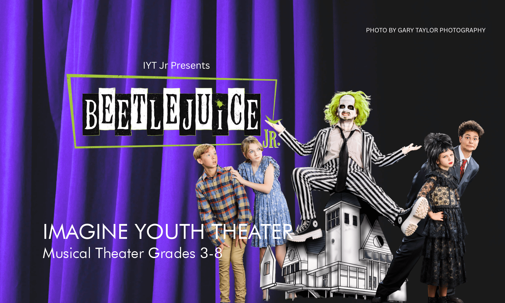 The ghost-with-the-most comes to the stage in Beetlejuice JR., the frightfully funny musical based on the beloved motion picture turned Broadway phenomenon. Lydia Deetz is a strange and unusual teenager, still grieving the loss of her mother and obsessed with the whole โbeing dead thing.โ Lucky for Lydia, she and her father move to a new house haunted by a recently deceased couple and Beetlejuice, a delightful demon with a real zest for life. When Lydia calls on Beetlejuice to scare away anyone with a pulse, this double-crossing specter shows his true stripes, unleashing a (Nether)world of pandemonium